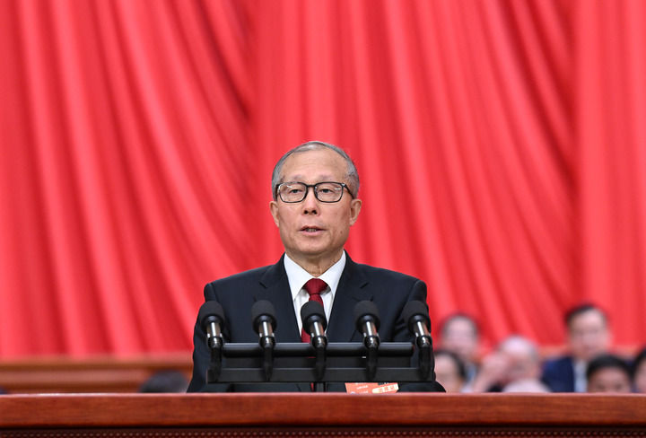 3月5日上午,第十四屆全國人民代表大會第三次會議在北京人民大會堂開幕。受全國人大常委會委托,全國人大常委會副委員長李鴻忠作關(guān)于全國人民代表大會和地方各級人民代表大會代表法修正草案的說明。新華社記者 張領(lǐng) 攝