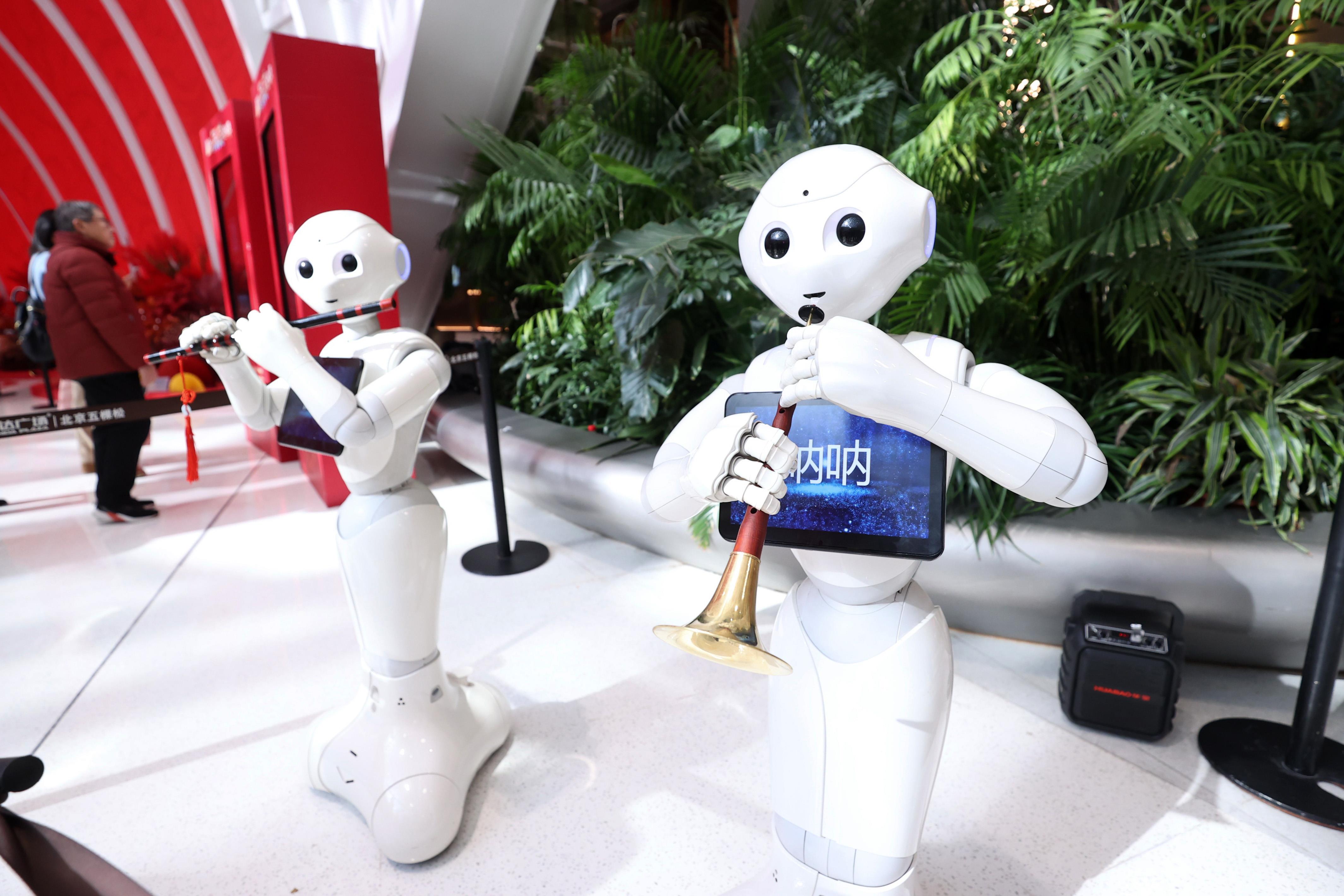 △2025年2月2日,機(jī)器人在北京海淀新春科技廟會(huì)上表演。