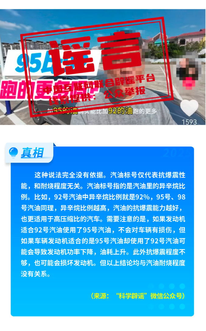 ??偽科普誤導公眾認知。部分網(wǎng)民利用專業(yè)領(lǐng)域信息差,曲解科學概念或傳播錯誤知識。謠言“95號汽油更耐燒”利用車主對油耗的關(guān)注,混淆汽油標號(異辛烷比例)與燃燒效率的概念,傳播錯誤認知。謠言“暴雨時躲在車內(nèi)更安全”違背防汛自救原則,可能導致公眾在極端情況下做出錯誤選擇,危害生命。值得關(guān)注的是,近期網(wǎng)上還出現(xiàn)“米湯可代替母乳和奶粉喂養(yǎng)孩子”“植物奶可以替代配方奶粉”“純素食可以滿足孕期全部營養(yǎng)需求”等系列謠言,打著“中醫(yī)”“科普”旗號,宣揚錯誤喂養(yǎng)知識,嚴重誤導母嬰群體,宣揚該觀點的博主已因發(fā)布謠言被平臺禁言。