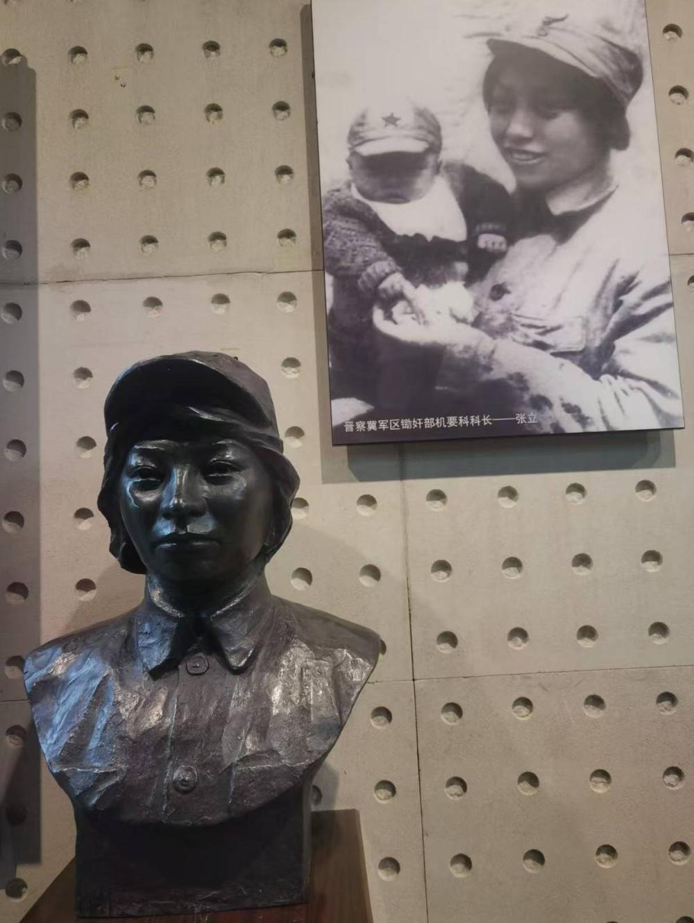 這是晉察冀邊區(qū)革命紀(jì)念館展示的張立圖片和雕像。新華社記者 何莉 攝