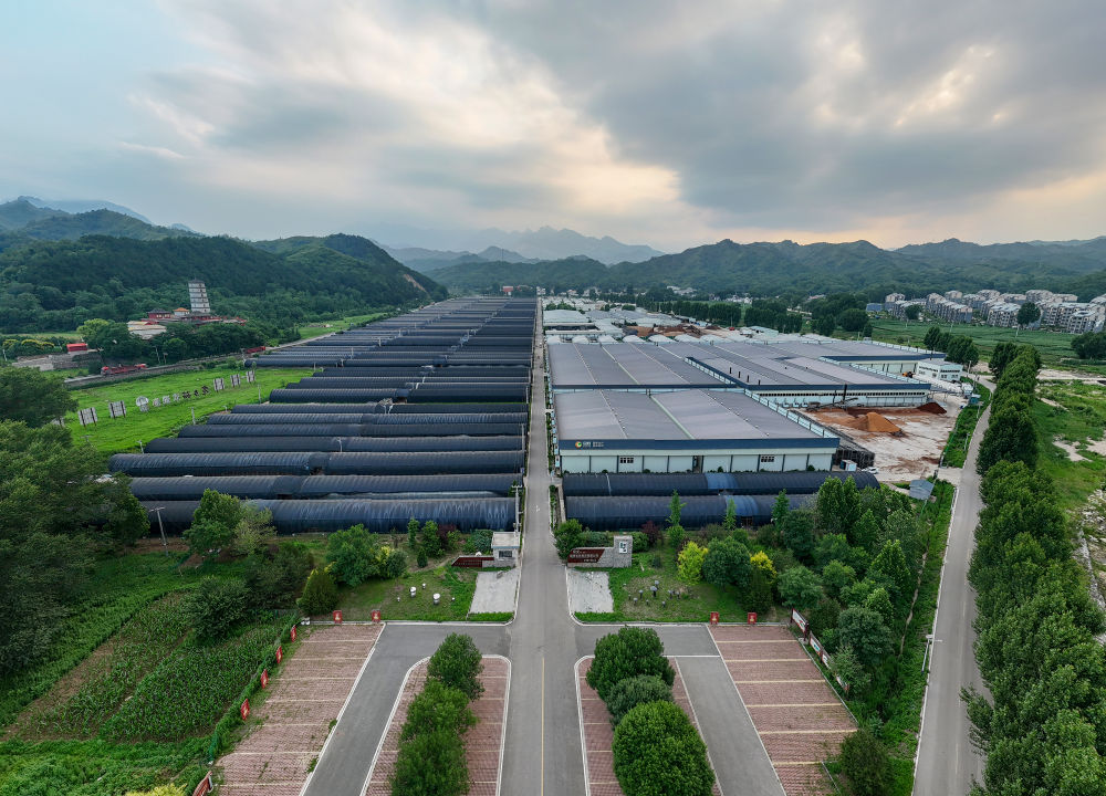 這是7月4日拍攝的阜平縣天生橋鎮(zhèn)食用菌產(chǎn)業(yè)核心園區(qū)(無人機(jī)照片)。新華社記者 李鑫 攝