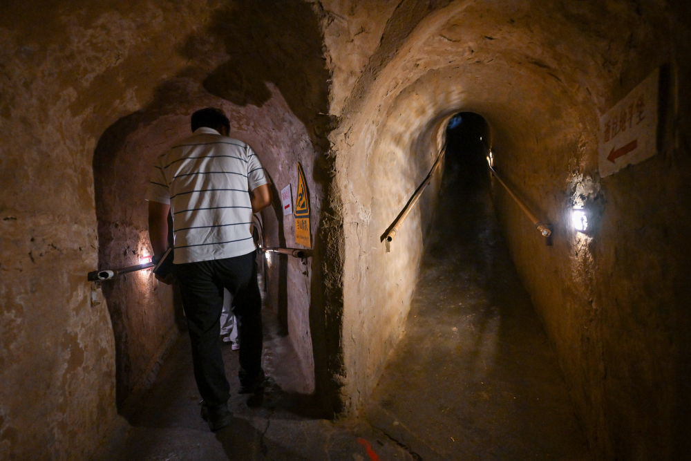 7月6日,游客在冉莊地道戰(zhàn)紀(jì)念館內(nèi)參觀拍攝。新華社記者 李鑫 攝