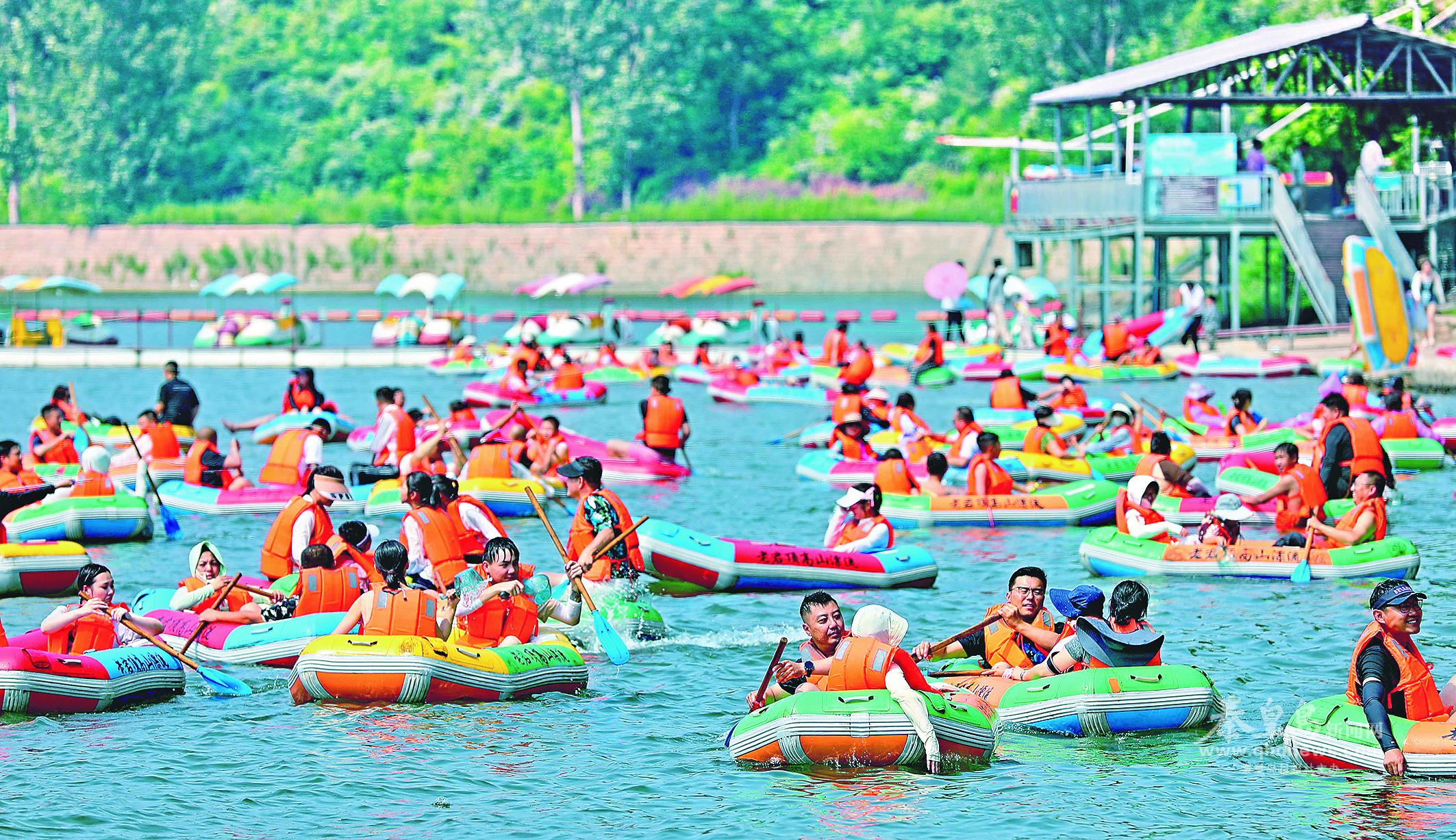 7月13日,游客在位于房莊村的老君頂景區(qū)體驗(yàn)漂流等游樂項(xiàng)目。記者 李鐸 通訊員 曹建雄 攝