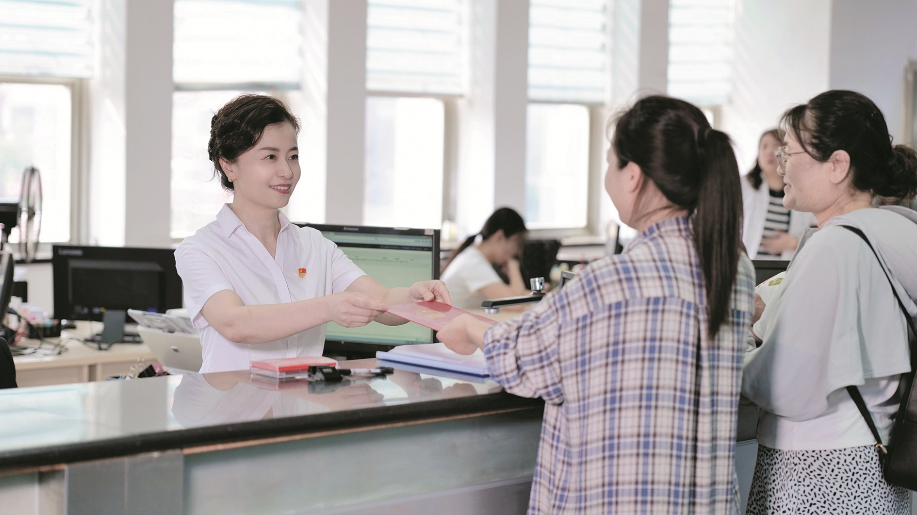 趙蕓蕓常說,坐在窗口里,代表的是政府,服務(wù)的是群眾,能夠用心用力用情幫助群眾辦好每一件事,讓她感到踏實(shí)又幸福。