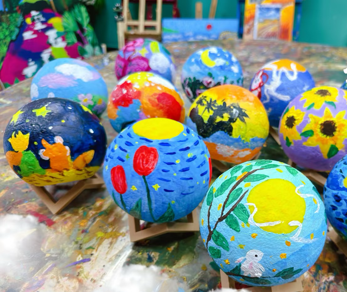 為進(jìn)一步感受“賞月、慶團(tuán)圓”的節(jié)日氛圍,活動(dòng)特別安排“將月亮帶回家”手工制作環(huán)節(jié)。孩子們通過(guò)構(gòu)思、涂抹、創(chuàng)意,在小月亮上繪畫花朵、天空、草地、小動(dòng)物等,創(chuàng)作屬于自己的月球燈,實(shí)現(xiàn)“將月亮帶回家”的目的。