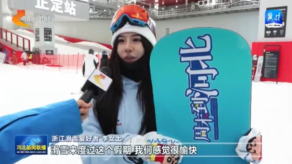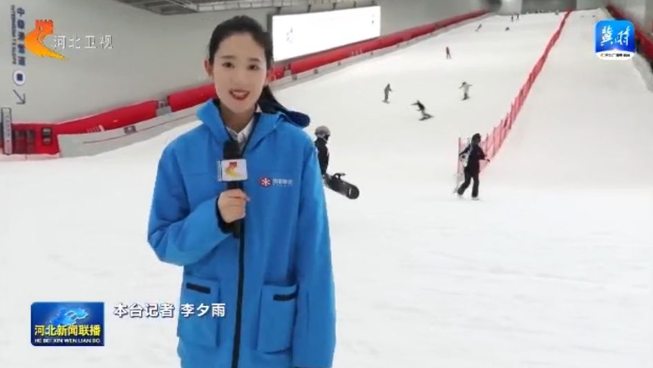 我現(xiàn)在是在我國華北地區(qū)最大的四季恒溫室內(nèi)滑雪場之一 —— 正定熱雪奇跡滑雪場。大家可以看到在我身后的初級滑道和中級滑道,滑雪高手們從高處風(fēng)馳電掣般滑下,非常的過癮。