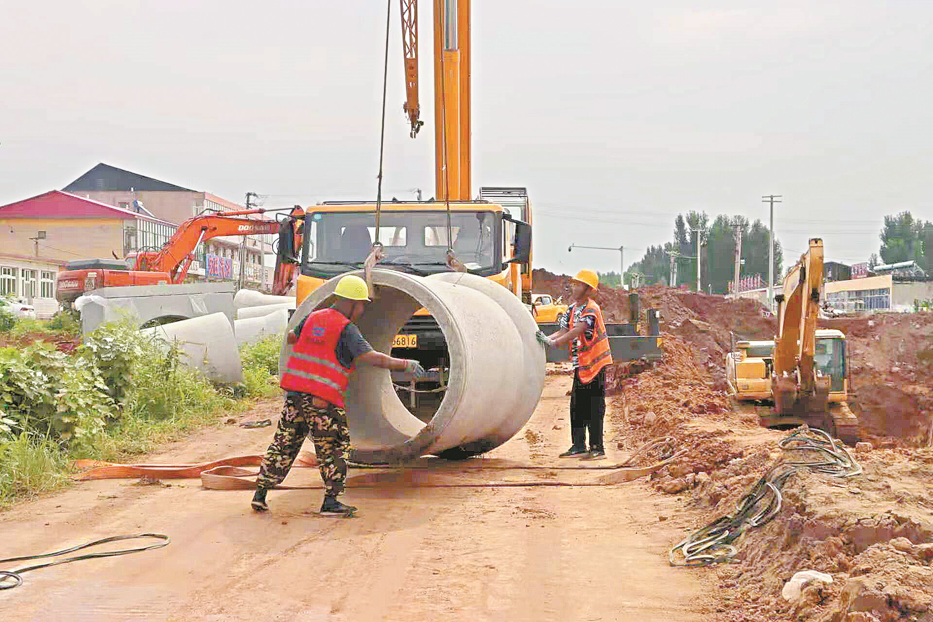 近日,記者在永平大街管網(wǎng)建設(shè)工程施工現(xiàn)場(chǎng)看到,多臺(tái)挖掘機(jī)正在緊張作業(yè),轟鳴聲此起彼伏,工人們各司其職,有的在鋪設(shè)管道,有的在平整路基,呈現(xiàn)出一派繁忙有序的施工景象。