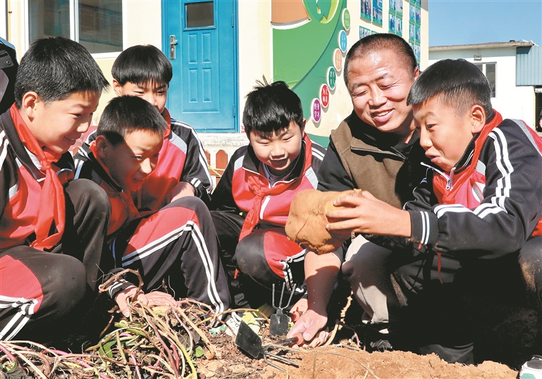 把“勞動(dòng)育人”融入日常教學(xué),校園里的農(nóng)耕園成為重要載體?!霸谶@里,同學(xué)們從播種、澆水、施肥到管理,全程參與農(nóng)作物生長,親手觸摸土地與生命的脈動(dòng)?!笨娗f小學(xué)校長王秀娜告訴記者,“通過掌握紅薯采收和加工技能,同學(xué)們能深刻體會(huì)勞動(dòng)的艱辛,讓勞動(dòng)不再是書本上的文字,而是可感可及的實(shí)踐?!?/p>