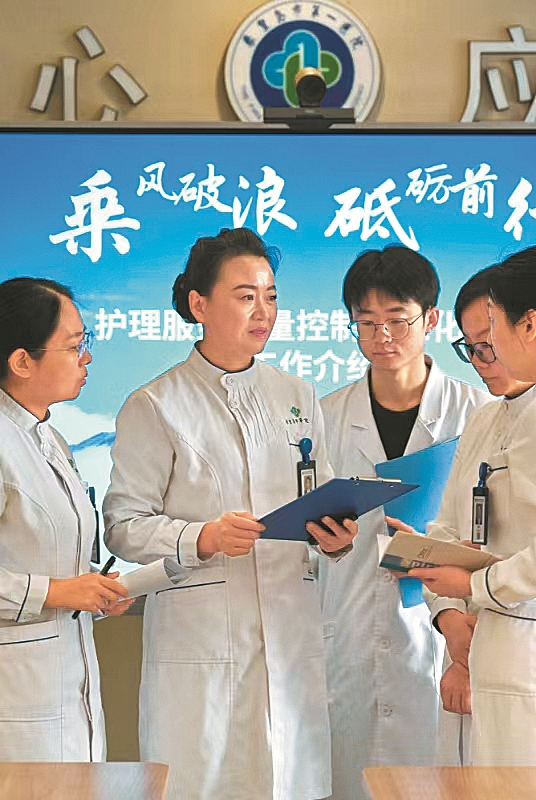 陳曉敏與同事探討護理質量標準化工作。(圖片由陳曉敏提供)