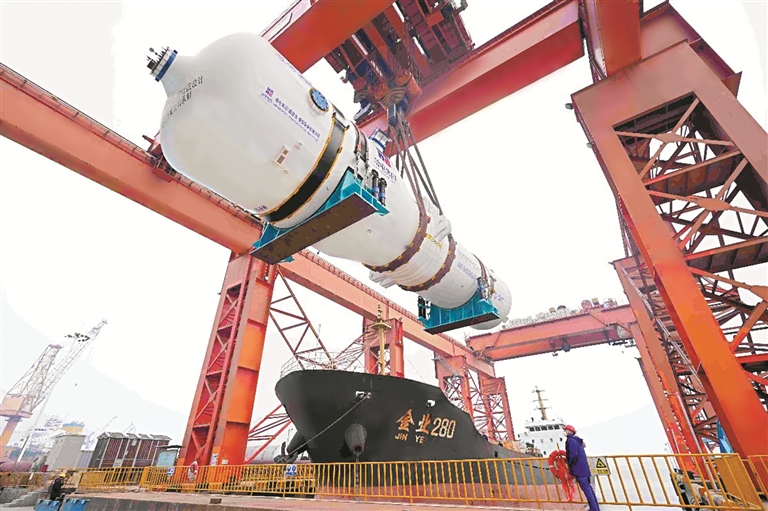漳州核電二期工程三號機(jī)組“華龍一號”蒸汽發(fā)生器準(zhǔn)備裝船發(fā)運(yùn)。通訊員 王繼軍 攝