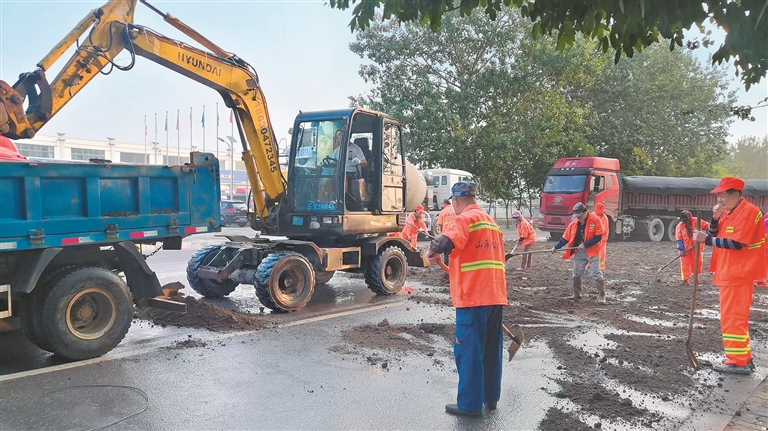 山海關(guān)區(qū)交通運(yùn)輸局第一關(guān)養(yǎng)護(hù)中心工作人員正在清理路面。(資料片)通訊員 陳忠凱 攝