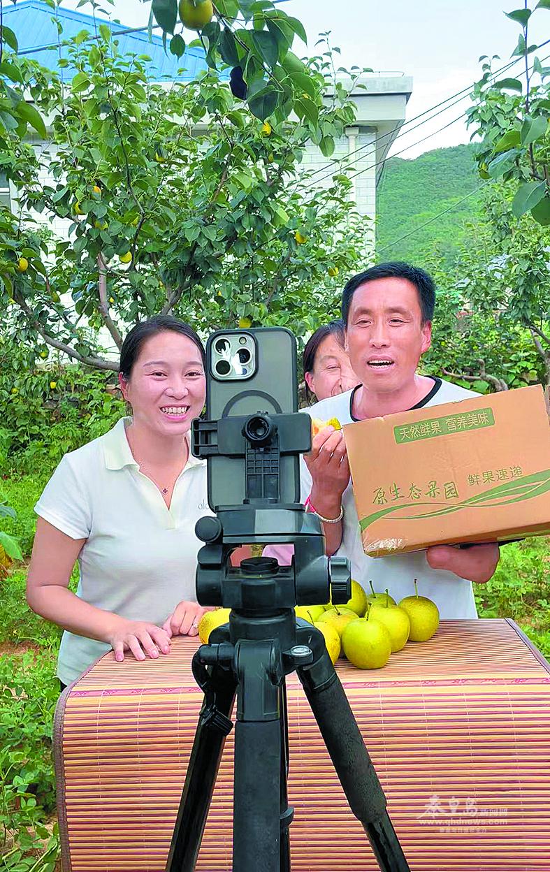 “雖然今年行情一般,但通過(guò)線上賣,一斤能賣到3到4塊錢。要是農(nóng)民自己賣,也就一塊多。”8月,“皇冠梨”下樹時(shí),鮑建秀通過(guò)直播賣出去5萬(wàn)多公斤,讓每戶果農(nóng)多賺了2到3萬(wàn)元。
