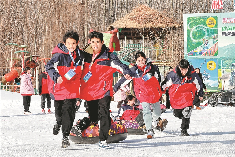 選手在紫云山滑雪場進(jìn)行雪地拖船跑比賽。秦皇島日報記者 劉雙喜 攝