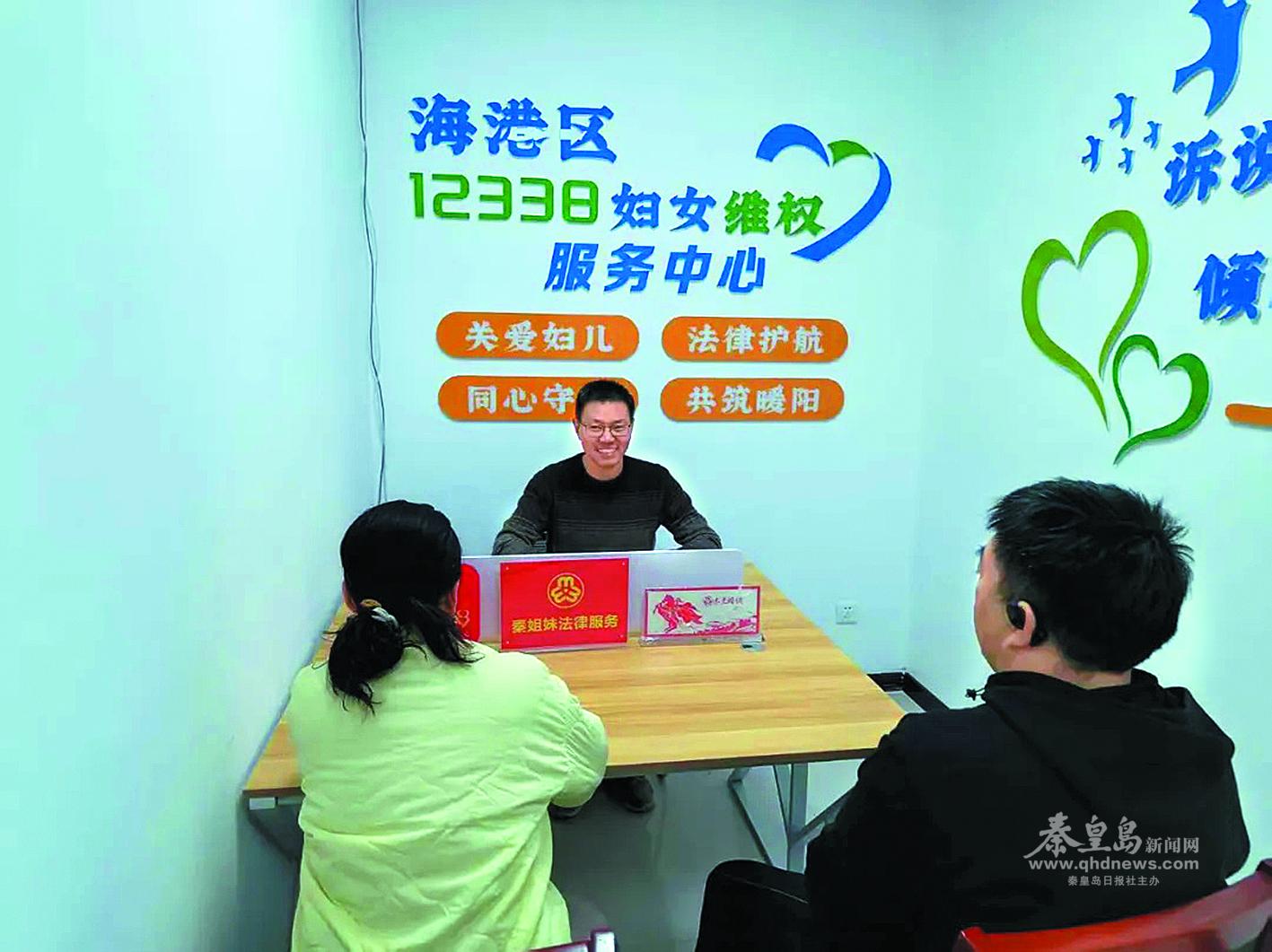 孫瑩在12338婦聯(lián)維權(quán)服務(wù)中心調(diào)解室內(nèi)調(diào)解家庭矛盾。 (圖片由市婦聯(lián)提供)