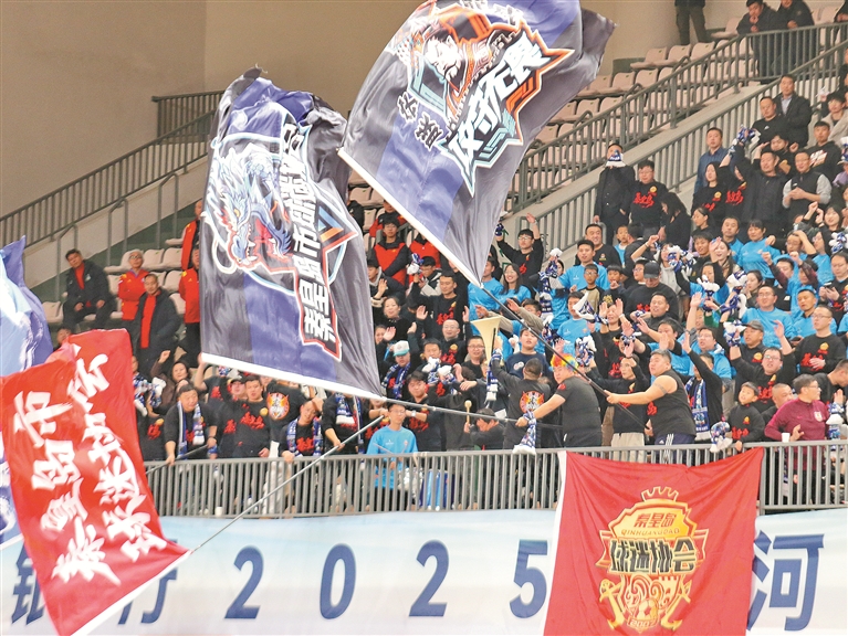 客場對陣唐山隊,球迷為秦皇島隊球員搖旗吶喊。