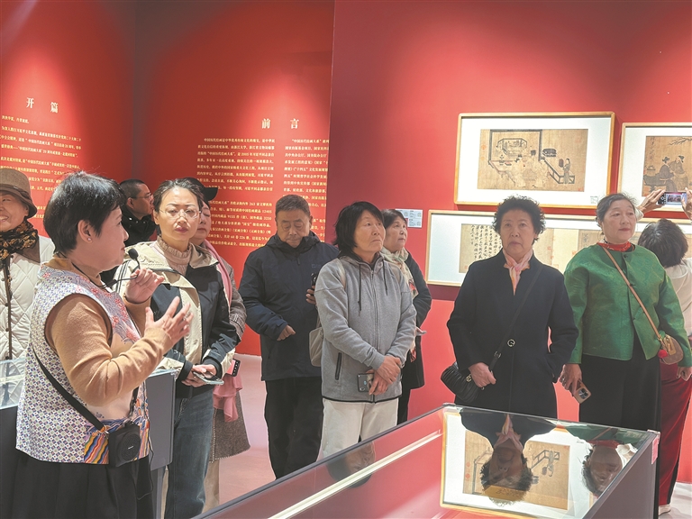 社區(qū)組織老人參觀“盛世修典——中國(guó)歷代繪畫大系成果展”。