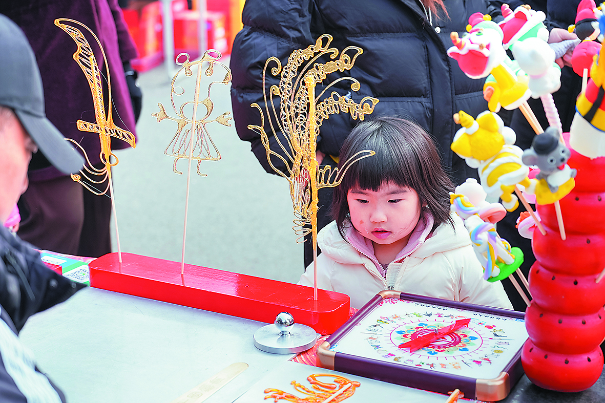 除了看不夠的表演,市集還“藏”著更多趣味。非遺體驗區(qū)內(nèi)早已擠滿了人,剪紙區(qū)的紅紙剪刀備得齊齊整整,非遺代表性傳承人手把手教大小朋友剪出喜慶的窗花;一旁的糖葫蘆制作、燈籠繪制也圍滿了好奇的體驗者。