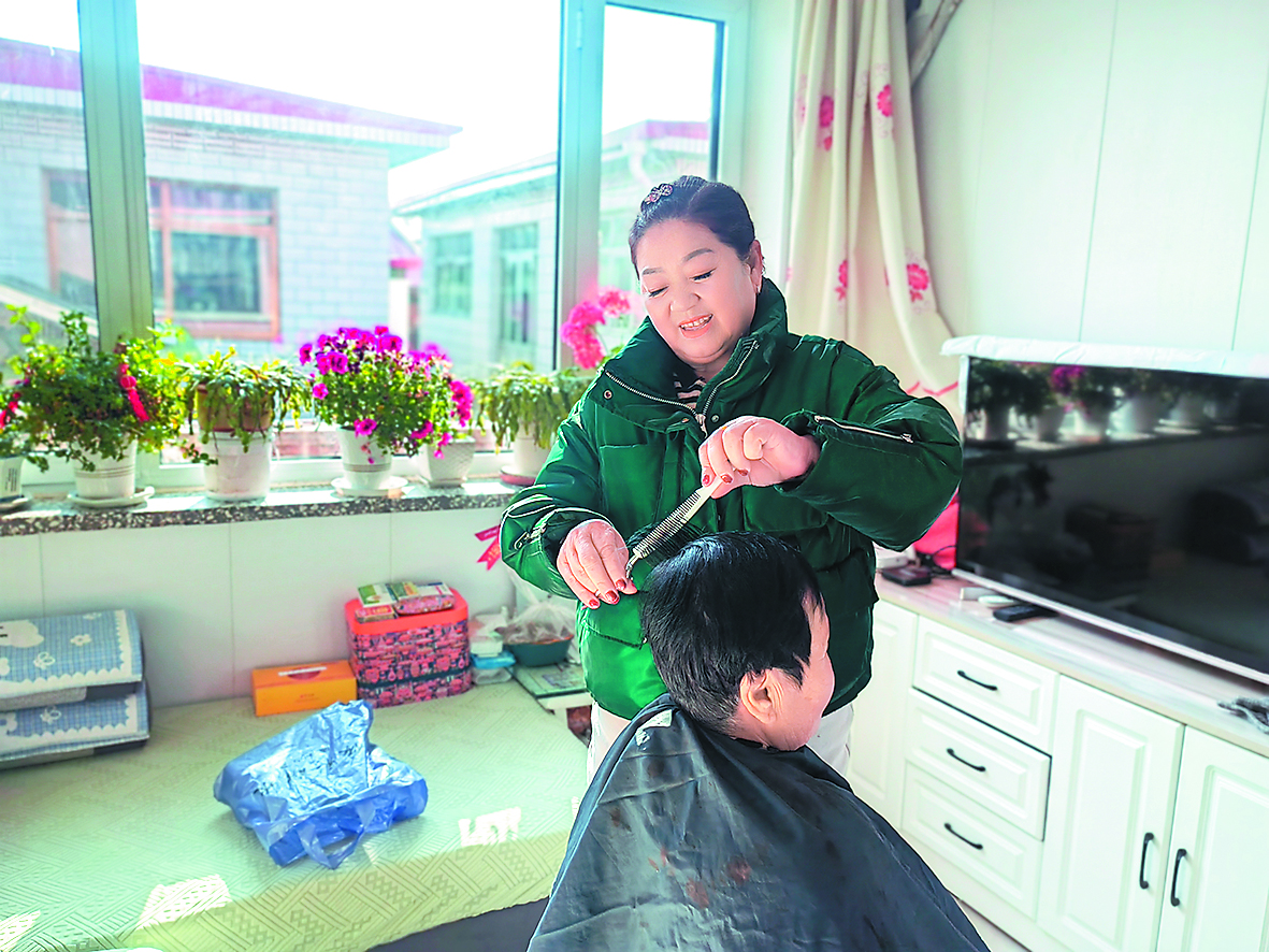 尹玉清為村里老人義務剪發(fā)。 (圖片由北戴河新區(qū)留守營管理處提供)