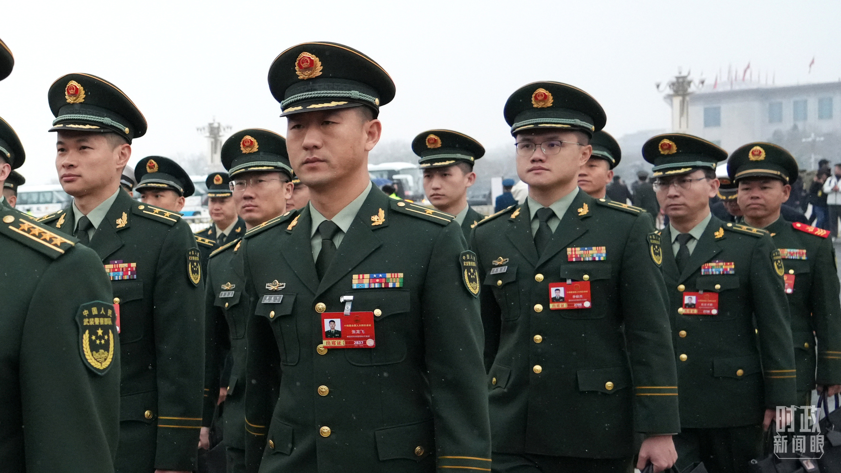 △3月5日,解放軍和武警部隊(duì)代表團(tuán)列隊(duì)走向十四屆全國(guó)人大四次會(huì)議開(kāi)幕會(huì)場(chǎng)。(解放軍報(bào)王俊拍攝)