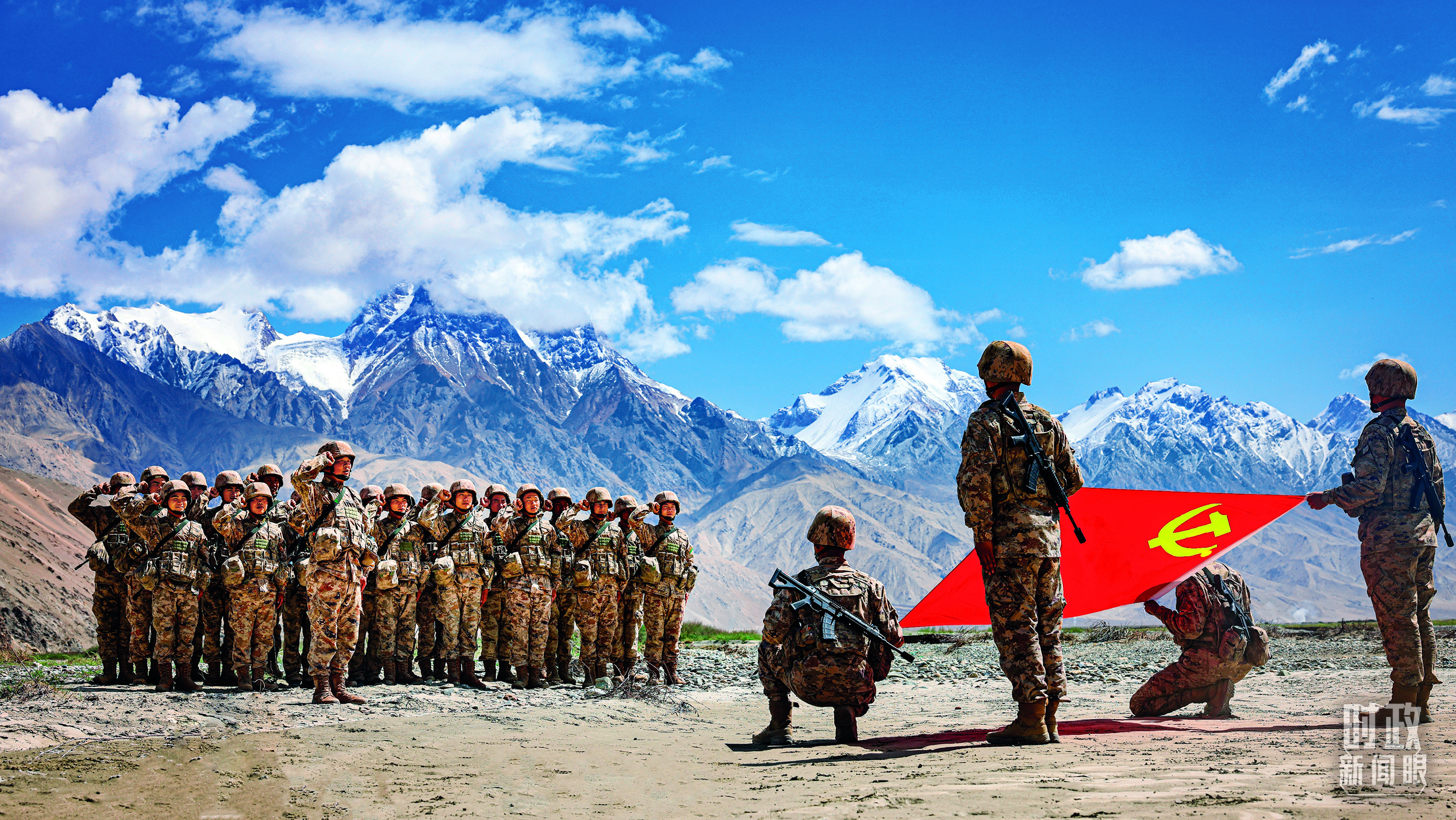 △新疆軍區(qū)某團(tuán)組織新黨員向黨旗宣誓。(解放軍畫(huà)報(bào)馬太郎拍攝)