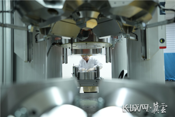 燕山大學(xué)材料科學(xué)與工程學(xué)院科研人員進(jìn)行高溫高壓合成實(shí)驗(yàn)。長城網(wǎng)·冀云客戶端記者 武佩劍 攝